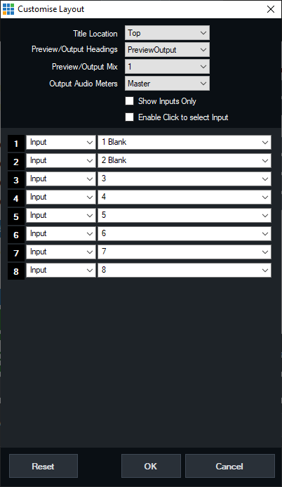Click Customise Layout to change the order inputs appear in the MultiView monitor.